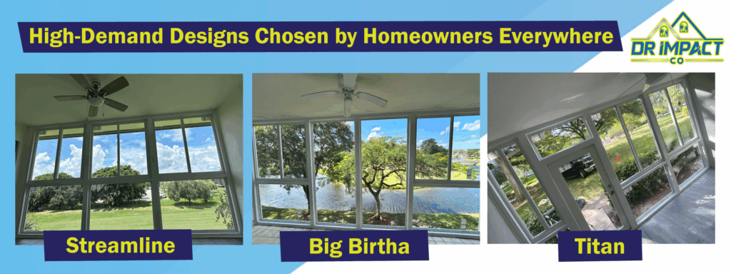We never use hidden wood bucks. Your entire structure is built from high-grade aluminum for unmatched strength and storm performance. Our Modular design can fit any window brand from CGI, PGT, ESW, MR GLASS, CWS, ANDERSON, & MANY MORE
